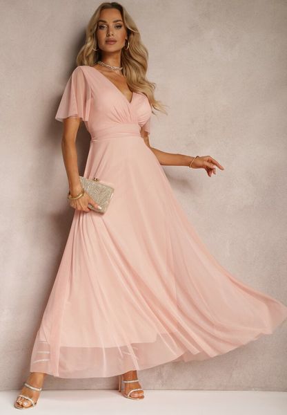 sukienki dekolt w kształcie v sukienki rozkloszowane sukienki bez ramiączek różowe sukienki sukienki ze sklepu renee.pl sukienki bez rękawów sukienki bez kołnierzyka sukienki z kopertowym dekoltem sukienki kopertowe odzież damska renee
