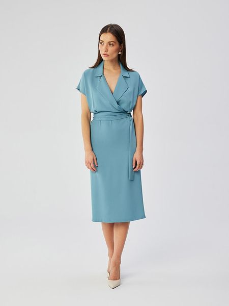 – kołnierzyk: z klapami- dekolt: V- w talii wiązanie: tak- dolny brzeg: z rozcięciem- krój: taliowany- look: jednokolorowy