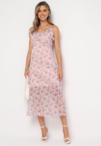 sukienki bez rękawów sukienki z falbankami odzież damska born2be różowe sukienki sukienki z dekoltem w serek sukienki born2be odzież damska born2be.pl sukienki ze sklepu born2be.pl sukienki midi sukienki dopasowane