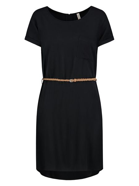 – czysta wiskoza- dekolt: okrągły- zapięcie: suwak na plecach- kieszenie: na piersi- szlufki na pasek: tak- zdejmowany pasek: skóra syntetyczna- dolny brzeg: zaokrąglony- krój: prosty- look: jednokolorowy