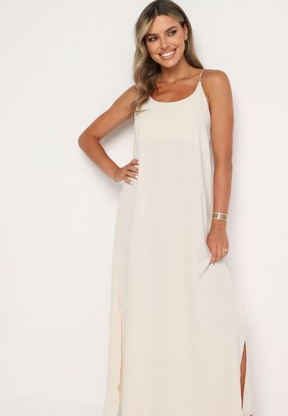 Beżowa Taliowana Sukienka na Ramiączkach Rivaniell