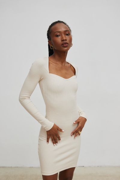 Sukienka typu bodycon wykonana z dzianiny prążkowanej w odcieniu jasnobeżowym Model o długości mini, z długim, dopasowanym rękawem. Niezwykle kobieca propozycja – dopasowuje się do sylwetki, podkreśla kobiece kształty, a zastosowany rodzaj dekoltu dodatkowo eksponuje biust i przykuwa uwagę. Może stanowić świetną bazę do stworzenia wielu ponadczasowych stylizacji, idealnych na imprezę, randkę, czy wieczór na […]