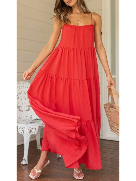 sukienki z falbankami czerwone sukienki sukienki bez kołnierzyka sukienki bez ramiączek sukienki maxi sukienki ze sklepu limango.pl sukienki milan kiss sukienki bez rękawów odzież damska milan kiss odzież damska limango.pl