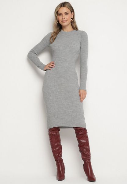 Szara Sukienka Dzianinowa Dopasowana Morttina