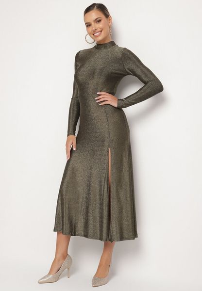 Złota Sukienka z Wiskozą Ozdobiona Brokatem w Eleganckim Stylu Werirra