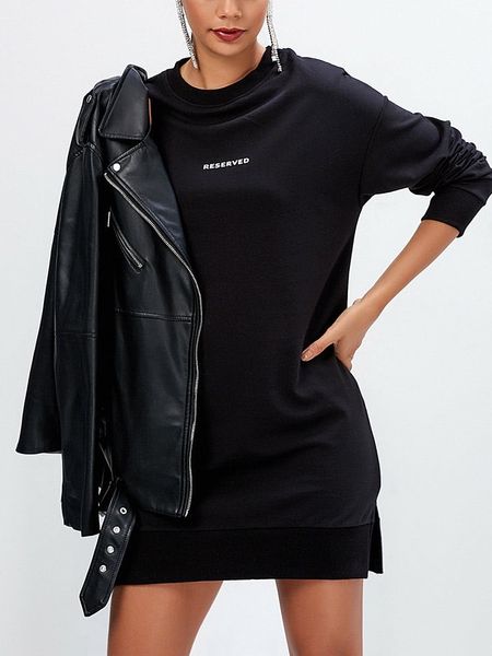 – dekolt: okrągły- dolny brzeg: z rozcięciem- krój: prosty- nadruk: w formie napisu- look: jednokolorowy