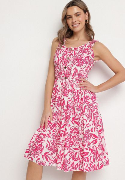 Ciemnoróżowa Bawełniana Sukienka Rozkloszowana Ozdobiona Guzikami Lisavena