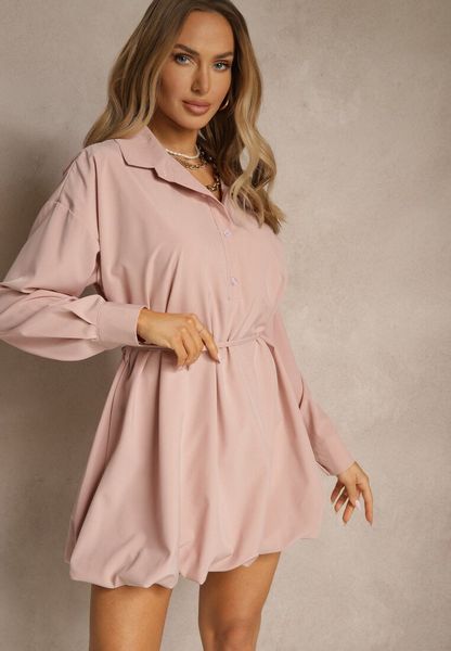 Różowa Sukienka Koszulowa Typu Bombka Ozdobiona Paskiem Lavirivae