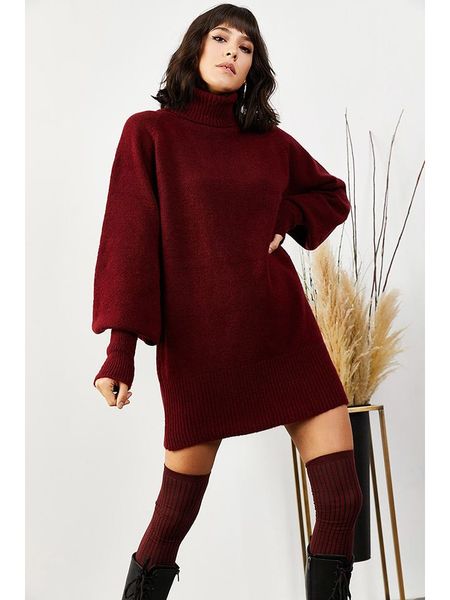 Olalook Sukienka dzianinowa w kolorze bordowym rozmiar: onesize