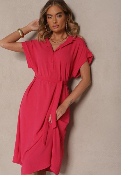 Różowa Pudełkowa Sukienka z Bawełną i Paskiem Savorienne