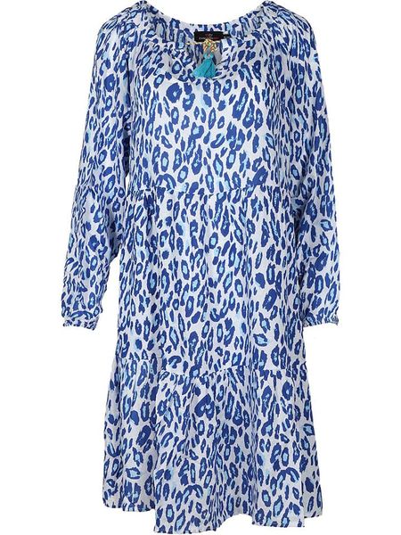 – czysta wiskoza- dekolt: z rozcięciem- zakończenie rękawów: elastyczne- dolny brzeg: z falbankami- detale: ozdobne tasiemki, chwosty- krój: luźny- wzór: panterka