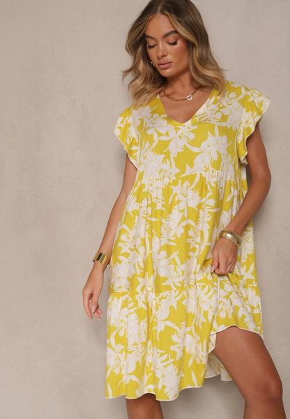 sukienki rozkloszowane sukienki z krótkim rękawem żółte sukienki sukienki bez ramiączek sukienki na spacer sukienki bez kołnierzyka sukienki mini odzież damska renee.pl sukienki na co dzień sukienki ze sklepu renee.pl
