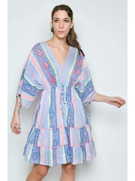 – czysta bawełna- dekolt: V- zapięcie: wiązane tasiemki- talia: ściągacz tunelowy- krój: luźny- wzór: colour blocking