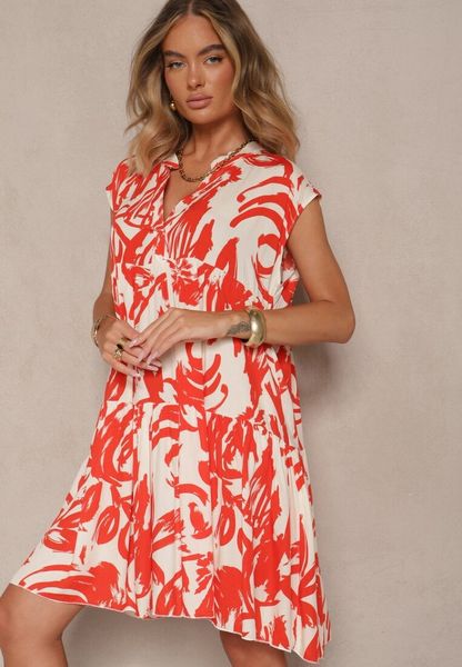 Pomarańczowa Sukienka z Bawełny Ozdobiona Abstrakcyjnym Motywem Lisovia