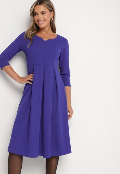 Fioletowa Rozkloszowana Sukienka z Rękawem 3/4 Nomiel