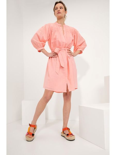 – czysta bawełna- dekolt: okrągły- zapięcie: listwa guzikowa- zdejmowany pasek: tkanina- rękaw: bufiasty- krój: prosty- look: jednokolorowy