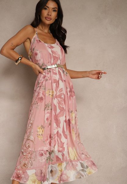 Różowa Kwiatowa Sukienka Siateczkowa z Wiskozą Izurelia