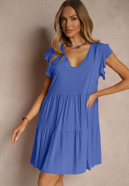 sukienki ze sklepu renee.pl sukienki na co dzień sukienki mini sukienki z falbankami sukienki z kopertowym dekoltem sukienki bez rękawów niebieskie sukienki odzież damska renee sukienki bez kołnierzyka odzież damska renee.pl