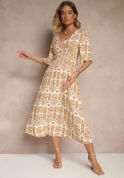 sukienki bez ramiączek sukienki dekolt w kształcie v sukienki ze sklepu renee.pl sukienki renee sukienki midi odzież damska renee.pl brązowe sukienki sukienki na co dzień sukienki bez kołnierzyka sukienki bez rękawów