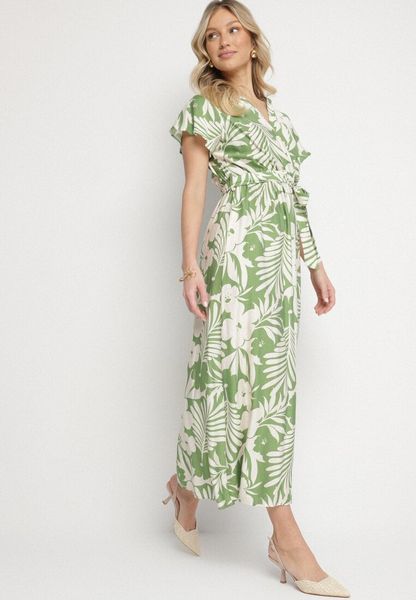 Zielona Sukienka Wiskozowa Rozkloszowana we Florystyczny Elaviela