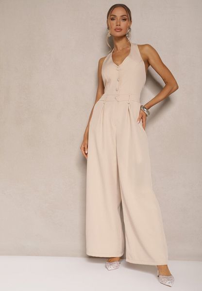 Beżowy Taliowany Kombinezon z Guzikami Nilaviella