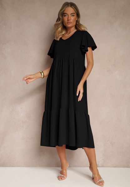 Czarna Rozkloszowana Sukienka z Wiskozą w Casualowym Stylu Filarenna