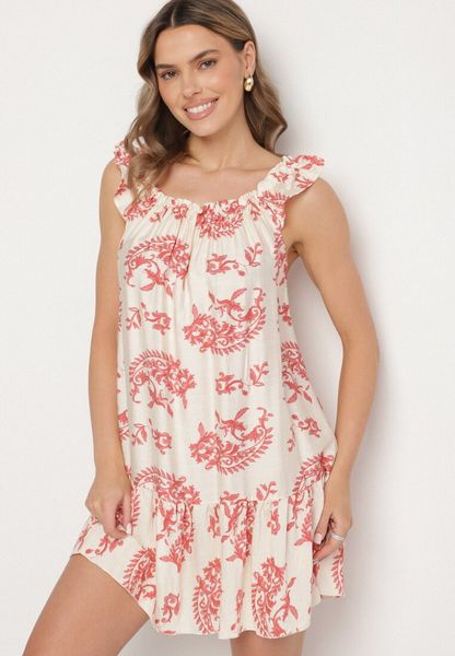 Różowa Wiskozowa Sukienka Rozkloszowana z Falbanką Ellivine