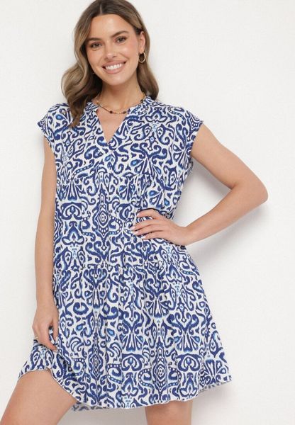 Niebieska Bawełniana Sukienka o Rozkloszowanym Kroju Oversize Liravina