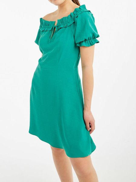sukienki ze sklepu limango.pl odzież damska limango.pl sukienki proste sukienki z falbankami sukienki midi odzież damska naf naf sukienki bez kołnierzyka sukienki bez rękawów sukienki naf naf zielone sukienki