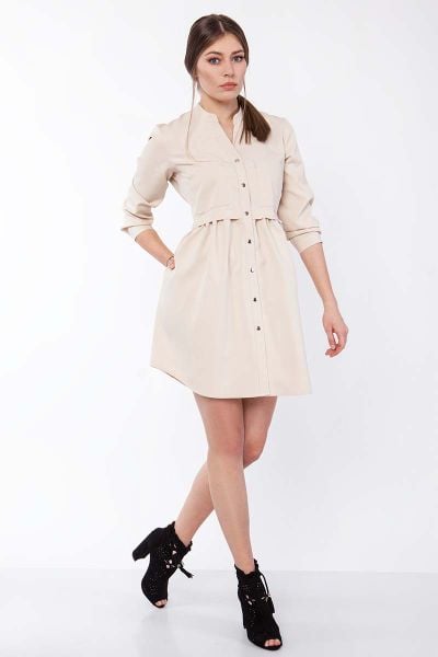 Beżowa Krótka Szmizjerka Zapinana na Napy