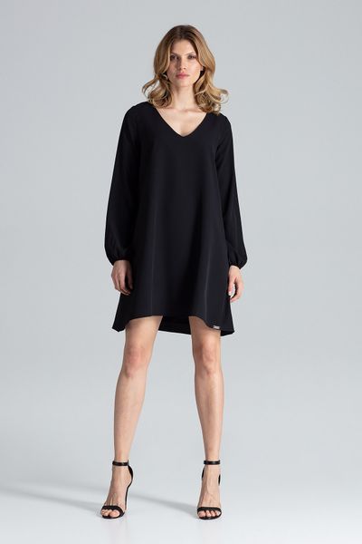 Sukienka Trapezowa z Długim Rękawem – Czarna