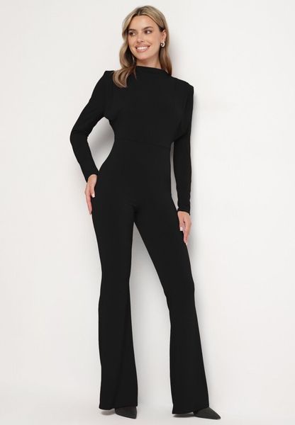 Czarny Koktajlowy Kombinezon Ozdobiony Wycięciem na Plecach Sewiel