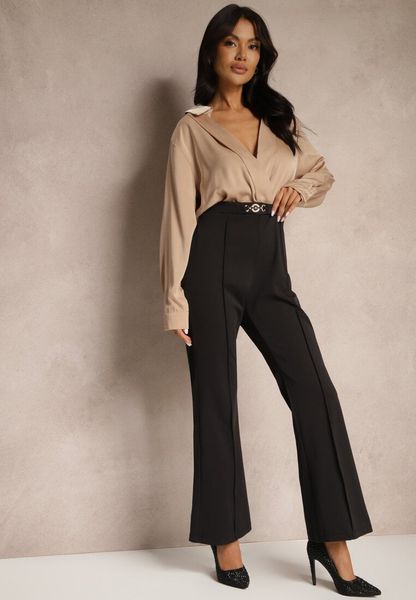 Czarno-Beżowy Kopertowy Kombinezon z Elegancką Koszulową Górą i Szerokimi Nogawkami Vareti