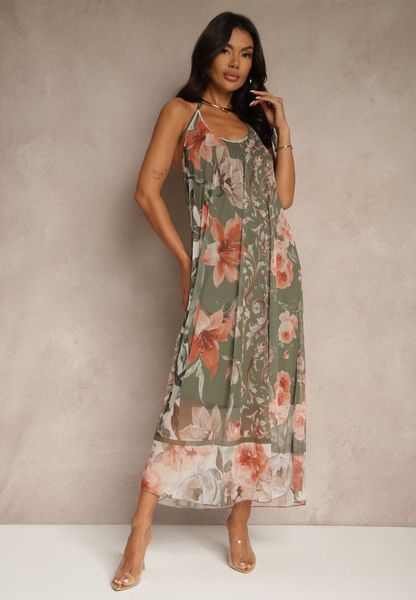 Ciemnozielona Kwiatowa Sukienka Siateczkowa z Wiskozą Izurelia