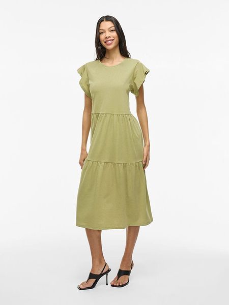 sukienki z okrągłym kołnierzem sukienki z falbankami sukienki bez kołnierzyka sukienki bez ramiączek sukienki vila sukienki ze sklepu limango.pl odzież damska limango.pl zielone sukienki sukienki bez rękawów odzież damska vila