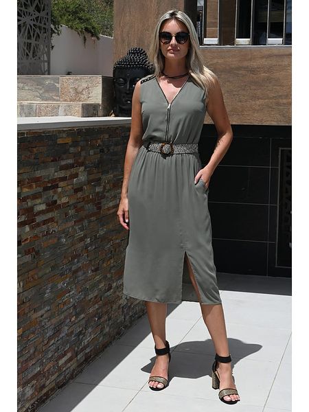 sukienki bez kołnierzyka sukienki midi odzież damska bleu d’azur sukienki bez rękawów sukienki bleu d’azur odzież damska limango.pl sukienki bez ramiączek sukienki ze sklepu limango.pl brązowe sukienki