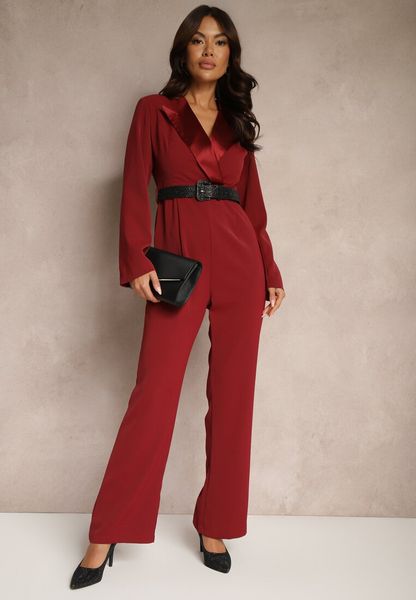 Bordowy Taliowany Kombinezon w Eleganckim Stylu z Szerokimi Nogawkami Etallina