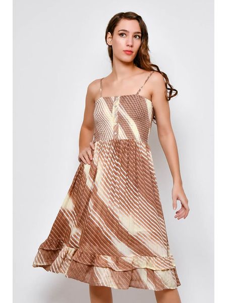 – czysta wiskoza- ramiączka: regulowane- dekolt: karo- dolny brzeg: z falbankami- krój: litera A- wzór: paski