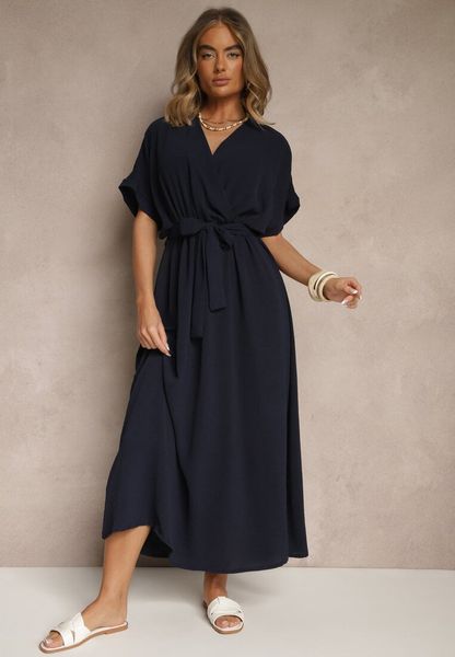 sukienki z kopertowym dekoltem sukienki kopertowe sukienki bez rękawów sukienki bez ramiączek niebieskie sukienki sukienki na co dzień odzież damska renee.pl sukienki bez kołnierzyka sukienki maxi sukienki rozkloszowane