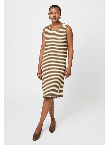 sukienki ze sklepu limango.pl brązowe sukienki sukienki proste sukienki midi sukienki rodier sukienki z okrągłym kołnierzem sukienki bez rękawów odzież damska rodier sukienki bez kołnierzyka sukienki bez ramiączek