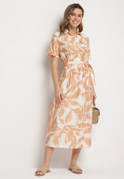 Beżowa Wiskozowa Sukienka o Koszulowym Kroju z Wiązanym Paskiem Uloanna