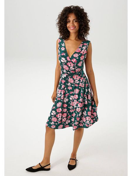– ramiączka: szerokie- dekolt: V- detale: ozdobne wiązanie- krój: litera A- wzór: kwiatowy