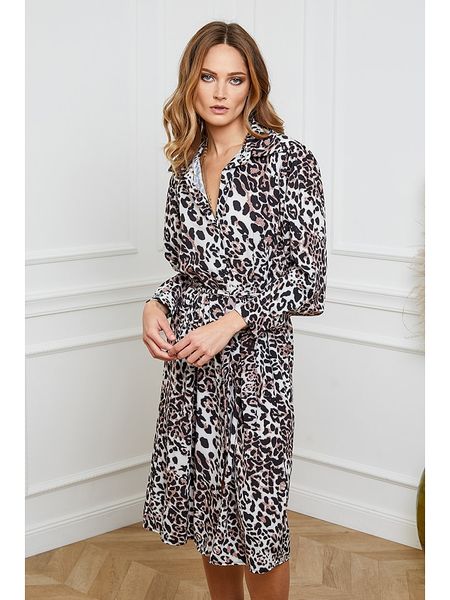 – kołnierz: kent- zapięcie: listwa guzikowa- zakończenie rękawów: guzik – szlufki na pasek: tak- zdejmowany pasek: tkanina- krój: prosty- wzór: panterka