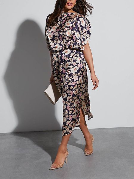 – dekolt: łódka- talia: elastyczna- dolny brzeg: 7/8, z rozcięciem- krój: luźny- wzór: kwiatowy