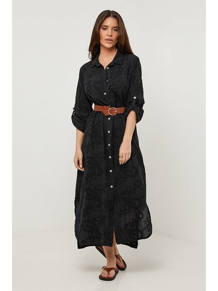 – czysty len- kołnierz: kent- zapięcie: listwa guzikowa- zakończenie rękawów: patka i guzik- dolny brzeg: z rozcięciem- detale: haft- krój: oversized- look: jednokolorowyUwaga: Przesyłka nie zawiera paska.