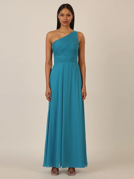 – krój rękawów: na jedno ramię- zapięcie: suwak na plecach- detale: plisy- krój: litera A- look: jednokolorowy
