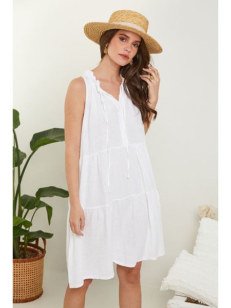 sukienki ze sklepu limango.pl sukienki rodier lin sukienki bez rękawów sukienki bez ramiączek odzież damska rodier lin sukienki midi sukienki bez kołnierzyka białe sukienki odzież damska limango.pl