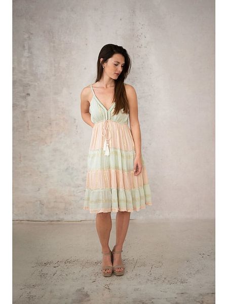 – czysta wiskoza- ramiączka: regulowane- dekolt: V- talia: ściągacz tunelowy- detale: falbany- wzór: colour blocking