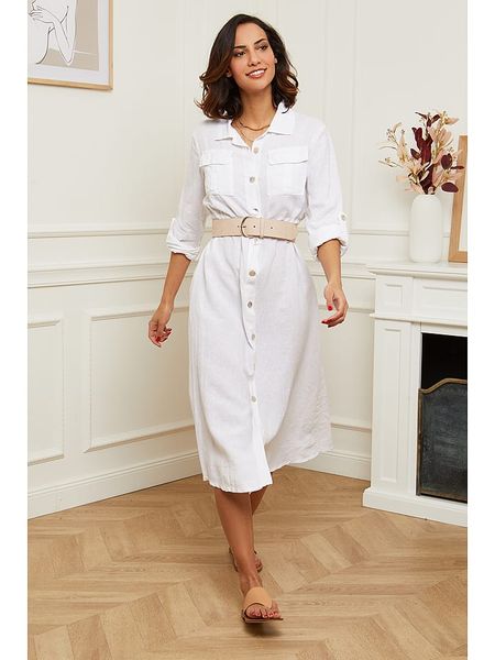 sukienki bez kołnierzyka sukienki maxi sukienki rozkloszowane odzież damska limango.pl białe sukienki sukienki z klasycznym kołnierzykiem odzież damska le monde du lin sukienki bez rękawów sukienki ze sklepu limango.pl sukienki le monde du lin