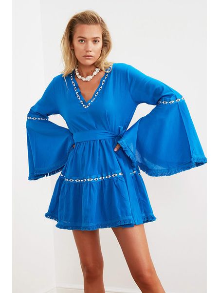 sukienki z falbankami sukienki bez kołnierzyka sukienki bez rękawów sukienki mini odzież damska limango.pl odzież damska trendyol sukienki ze sklepu limango.pl sukienki trendyol niebieskie sukienki sukienki bez ramiączek